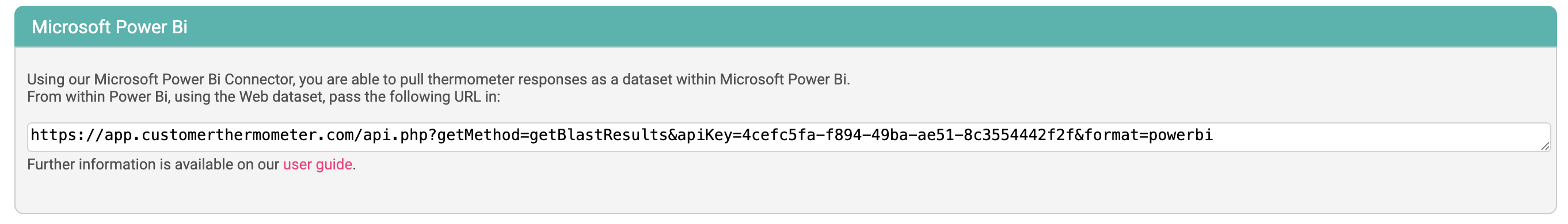 Using the Customer Thermometer APIs, it's possible to pull response data straight from Customer Thermometer into Microsoft Power Bi.